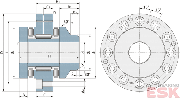 | d(внутренний диаметр): 30 мм | d1: 52 мм |